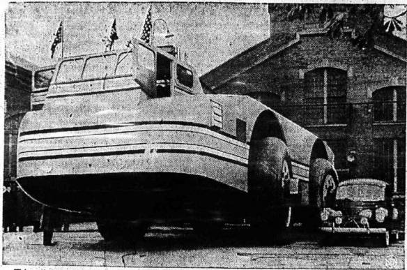 This polar omnibus, which has had northern Indiana waiting and watching for four days, was passing eastward across LaPorte county this afternoon, using U. S. Road 6. Constructed by the Armour Institute of Technology in Chicago, the huge craft is being moved to Boston, taking-off point for the latest Byrd Antarctic expedition. The trip eastward is serving as sort of a test run for the giant snow cruiser. |
