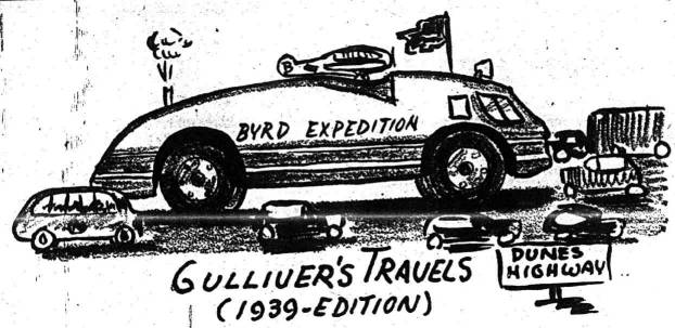 FORT WAYNE, Ind., Oct. 28. -- (U.P.) -- Admiral Richard E. Byrd's 35-ton snow cruiser lumbered into Fort Wayne this morning some 36 hours behind schedule and still 845 miles short of Boston, its point of embarkation for Little America. The cruiser's crew of four worked until early this morning installing new pressure equipment that controls the steering of the juggernaut. The original apparatus ceased to function properly yesterday after the cruiser sideswiped a truck at Columbia City, Ind. They finished the repairs early this morning and arrived in Fort Wayne, 21 miles away, just five hours later. The cruiser has been slowed all along its route by the crowds of spectators who wanted a look at the gigantic machine and by bridges. An estimated crowd of 10,000 milled around it at Warsaw, Ind., its first night out of Chicago, and 12,000 gathered to watch the crew make the repairs last night. Police and newspapers across the state have been swamped with telephone calls asking the progress of the steel monster. But the bridges have proved the major hazard. At three so far the crew has been forced to remove the hub-caps from its 10- foot wheels, exposing the motors that control its movements, to allow precious additional inches of clearance. One bridge took two hours to cross, another an hour. Because of this, the crew would not venture to guess when they will arrive at Boston. However, they express satisfaction with the cruiser's performance to date. Cruiser Hits Bridge Overturned in Creek LIMA, O., Oct. 28.--(INS).-- Admiral Richard E. Byrd's giant snow cruiser overturned one-half mile east of Gomer, 10 miles north of Lima, on U. S. Route 30 today when it hit the side of a bridge. The left front wheel of the cruiser was knocked off. The cruiser then overturned in the small creek. No one was hurt. First reports said the cruiser was lying on its left side in the creek bed. Just how long it would take to right the cruiser so it could continue its trip from Chicago to Boston could not be determined immediately. The accident occurred at about 1:30 p. m. (EST). |