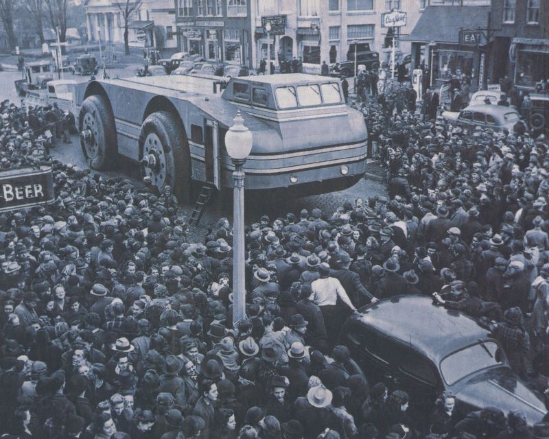 By Mark J. Price - Beacon Journal staff writers The road to Antarctica ran straight through Akron. If only the city founders had known, they might have made the streets a little wider. The Antarctic Snow Cruiser, the world's largest automobile, rumbled over Akron's brick pavement in November 1939 en route to the South Pole. Imagine a street parade from Chicago to Boston, but with only one giant float. That's what it was like to see the steel monster on its 1,021-mile voyage to the East Coast. An estimated 2 million Americans stopped what they were doing -- be it work, play or sleep -- to catch a quick glimpse of the big vehicle during its travels. The $150,000, diesel-powered cruiser, heralded as ''one of the most daring scientific dreams conceived by man,'' was built for Adm. Richard E. Byrd's U.S. Antarctic Service expedition. Honest to gosh, it looked like something out of Flash Gordon or War of the Worlds. The red, orange and silver vessel was 55 feet long, 20 feet wide and 16 feet high. It had living quarters for five, a kitchen, cabin, engine room, machine shop, darkroom and storeroom. There were enough food and supplies to last a year, and enough fuel to go 5,000 miles. But it couldn't get there fast. The top speed was 30 mph. The road-hogging cruiser needed just about every inch of pavement as it crossed the United States. When it approached oncoming traffic, other motorists had to pull over. A 37-ton vehicle always has the right of way. The snow cruiser's tires, the largest the world had ever seen, were made in Akron, of course. They measured 10 feet in diameter, weighed 1,500 pounds and were built to withstand temperatures of 75 degrees below zero. One of them, in fact, was the 300 millionth tire produced by Goodyear Tire & Rubber and spent a week on display in the front window at Polsky's Department Store before being shipped to Chicago. The cruiser was designed by Thomas C. Poulter, who had rescued Byrd from the South Pole during a 1934 expedition. Poulter wanted a giant vehicle that could roll across ice crevasses, unlike modern tractors that had to go all the way around them. He persuaded Chicago's Armour Institute of Technology to undertake the project. Goodyear was one of several U.S. companies to work on the vehicle, which was built in less than three months in Illinois. Unfortunately, there wasn't a lot of time to test the vehicle. It had to be in Boston by mid-November to catch a ship bound for Antarctica. The cruiser left Chicago on Oct. 24, 1939, slowly making its way through heavy traffic as police escorts led the way. The trip was supposed to take eight days, but problems soon arose. For one thing, rain made the going slow. Then a truck accidentally slammed into the cruiser in Indiana. The futuristic car's fuel pump malfunctioned. Then the cruiser struck a bridge near Lima, Ohio, rolled down a hill and got stuck in a muddy ditch for nearly four days. Adding insult to injury, its fuel line burst. The delays piled up. Akron residents heard the vehicle was on its way, but the arrival time kept getting pushed back. As the cruiser lumbered through Mansfield, Ashland, West Salem, Lodi and Wadsworth, big crowds gathered to see it. People weren't the only ones amazed. Startled farm animals gawked at the giant intruder and bolted away from it. An Akron delegation led by Mayor Lee D. Schroy met the polar roller Nov. 2 near Norton. Schroy shook hands with Poulter, who was at the controls. It finally was here! Word spread quickly. A line of spectators thickened as the immense car rode into Akron. It traveled along Wooster Avenue, South Hawkins, Mull Avenue and West Exchange. At Rose Boulevard, the vehicle pulled over to pick up Goodyear Vice President E.J. Thomas. Police pushed back the crowds as the cruiser entered downtown Akron. At Main and Exchange, the vehicle stopped again to pick up Goodyear President P.W. Litchfield and his two grandsons. The cruiser rolled past the tire company's headquarters on East Market and then headed south to the Goodyear air dock, where Poulter picked up two spare tires and parked for the night. A massive crowd visited the air dock that evening to take a peek at the strange machine. ''Tens of thousands of Akronites flowed onto the airport and into the dock, jamming traffic for blocks around the vicinity,'' Akron Beacon Journal writer Anthony Weitzel reported. ''There were boys and girls in that crowd, and men and women carrying infants, grandmothers hobbling through the wet grass and grandfathers helping them.'' Poulter begged off a banquet that had been organized in his honor at the Mayflower Hotel. He was too tired. He just wanted to go to sleep. The next day, the Antarctic Snow Cruiser crept out of Akron and continued eastward, never to be seen again in these parts. It rambled into Boston on Nov. 12, bringing New England traffic to a screeching halt. The beast crawled to the wharf, where it was hoisted aboard the ship North Star. The ''eight-day trip'' had taken 19 days. The ship and its precious cargo arrived at Antarctica's Ross Ice Shelf on Jan. 12, 1940. After the cruiser was unloaded, Poulter made a terrible discovery. The car was far too heavy. Its wheels became stuck in the snow. The engines weren't powerful enough to break free. The Goodyear tires spun around and around. The flawed machine would do little exploration. It couldn't go far without getting stuck. The best thing that could be said about the immobile home was that it provided a nice shelter from the cold. As it turned out, the greatest adventure turned out to be that trip from Chicago to Boston. But even if the vehicle had worked according to plan, it wouldn't have mattered. After the United States entered World War II, the polar expedition was scrapped. The crew returned home and the Antarctic Snow Cruiser was abandoned on the ice shelf. The cruiser's whereabouts remain a mystery today. It might be buried under ice and snow, waiting to be rediscovered by future explorers.