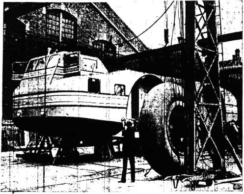 Sand dunes will serve as Antarctic snow banks for the first official tests of this giant 45,000-pound "snow cruiser" now nearing completion in Chicago. Officials of the Research Foundation of the Armour Institute of Technology said that only the huge wheels have yet to be placed on the cruiser before it will be wheeled out to an area in Miller just east of the county line. |
