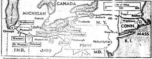 By NEA Service, Chicago, Oct. 19--The giant snow cruiser being built by the Research Foundation of the Armour Institute of Technology for the U. S. Antarctic Expedition is nearing its final tests, which will be stiff ones carried out among the sand dunes near here. That will give a close approximation of conditions to be met in the Antarctic later, when the cruiser will be the home of four men throughout the polar winter. When the tests are completed, shortly after Oct. 23, the cruiser will roll slowly eastward toward Boston along roads chosen for width and the lack of bridges or underpasses. It will average 20 miles an hour on this "shakedown cruise," 10 miles under top speed, making overnight stops at Fort Wayne, Ind., Mansfield, O., and Akron, O., Fredonia, Auburn and Albany, N. Y., and Westboro, Mass., before arriving at Boston, where it will go to the army base before taking ship at the navy yard for the polar seas. (The route to be taken by the giant snow cruiser includes the stretch of U. S. Road No. 6, across LaPorte county and many LaPorteans will be able to see the big vehicle at Kingsbury and elsewhere along that route. Definite announcement as to when it will make its trip will be published later.--The Editor). The cruiser will travel only by day because of traffic risks, but once in the Antarctic, day and night will be all one, for she carries her own generating plant for lights, her own machine shop for repairs, and her own winch and dragline to pull herself out of any crevasse or pit from which her own wheelpower is unable to move her. The cruise from Chicago to Boston will be to the snow cruiser what a "shakedown cruise" is to a battleship--an opportunity to show up any defects before the real test comes. Any repairs or changes which should prove necessary can be made at Boston before embarkation. |